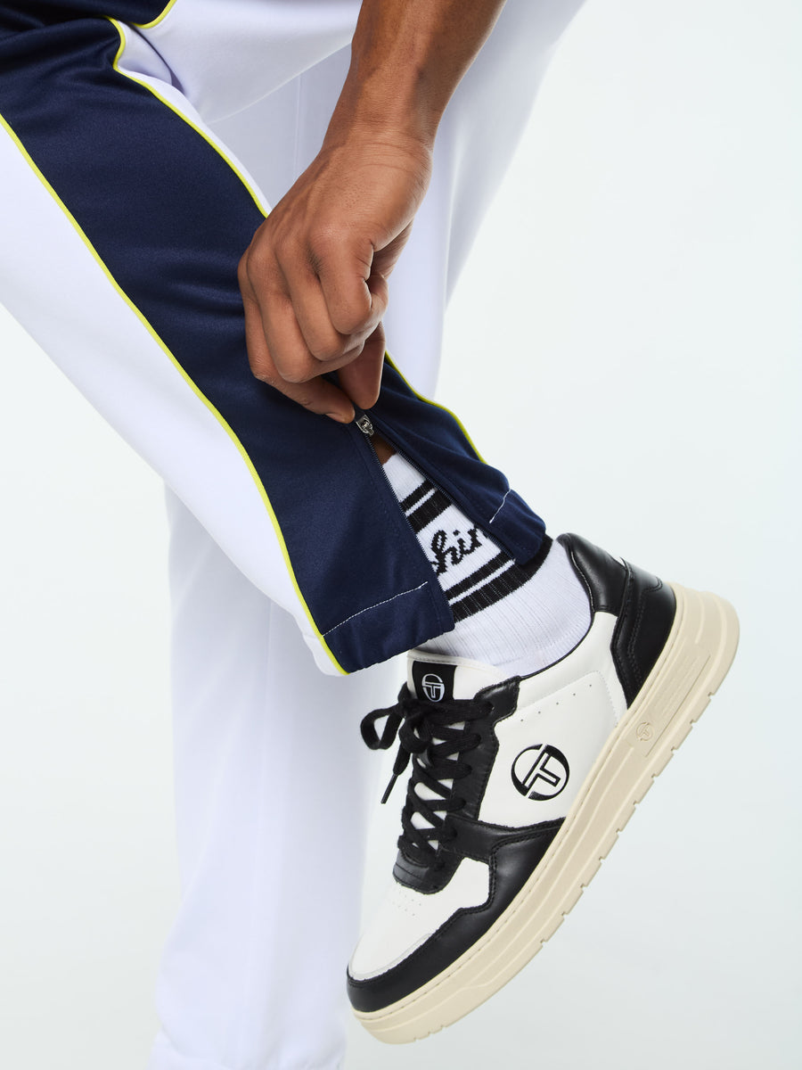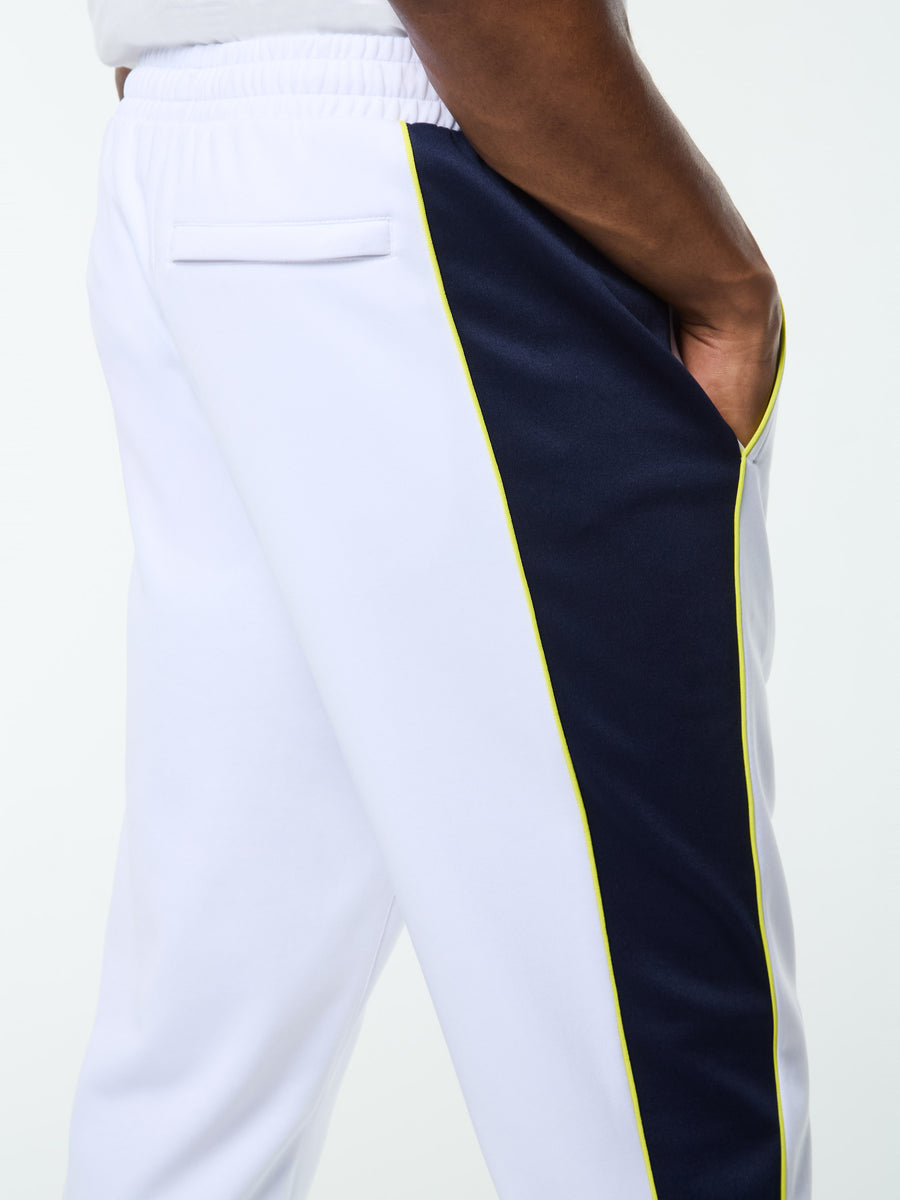 Where sport meets statement. Our Corsa Track Pant takes cues from vintage racing kits—revved up with modern edge. Crafted from soft yet structured double-face knit fabric, these premium track pants feature bold color-blocking and piping accents down the legs, a comfortable drawstring waistband, and adjustable ankle zips for on and off-court convenience.