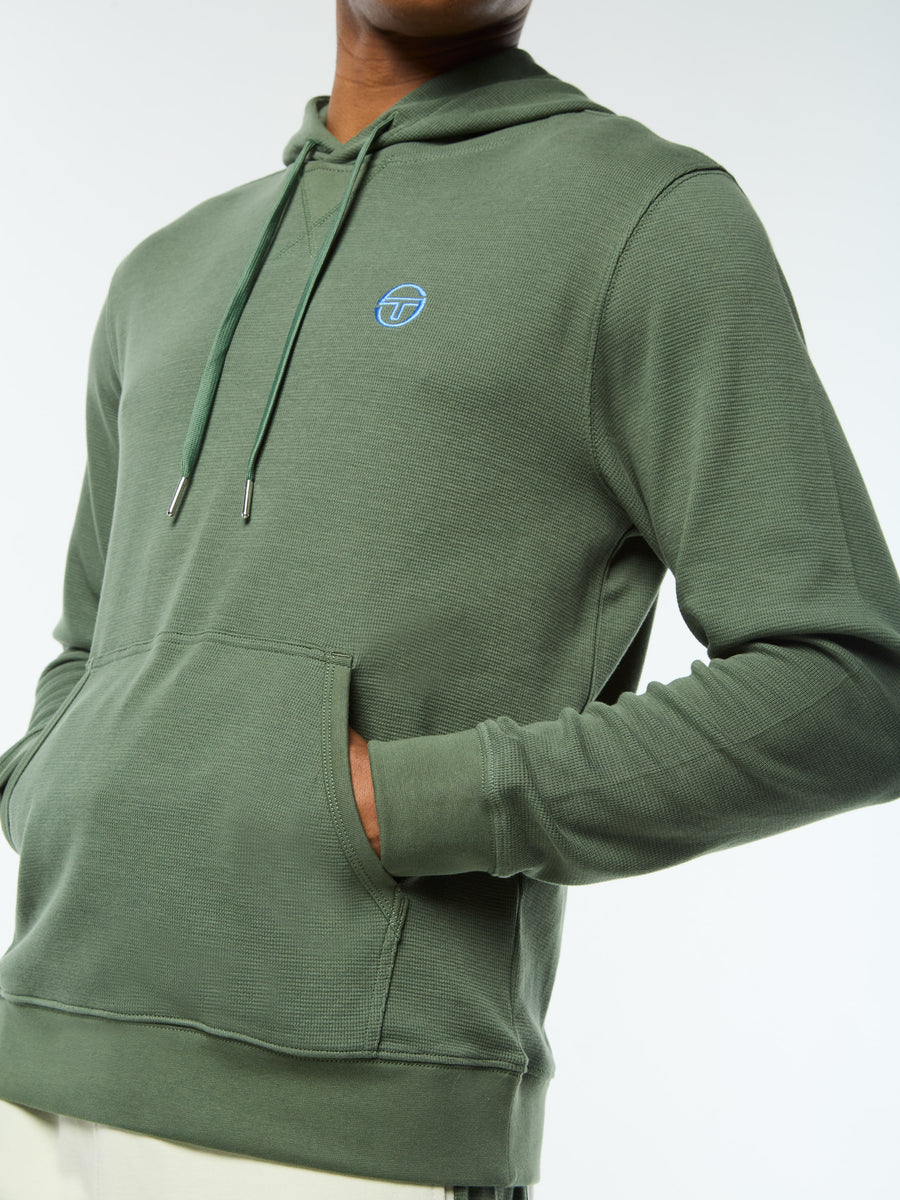 An elevated take on a wardrobe staple, the Grafico Hoodie is crafted from premium waffle knit stretch fabric for an ultra-soft feel and refined texture. Blending comfort with considered design, this pullover features a spacious double-layer hood, a kangaroo pocket for casual utility, and rib-knit accents. Perfect for layering through cooler weather, the Grafico delivers everyday ease with a luxe finish.