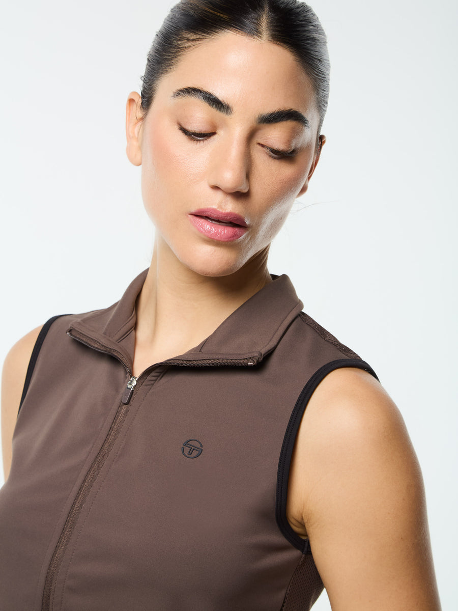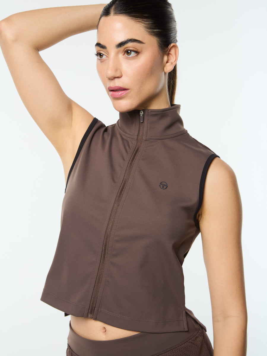 Sharp, sleek, and made to move. The Milana Top is a modern spin on classic athletic-wear—cut from high-stretch performance fabric in a cropped and fitted silhouette that flexes with you. Designed with a breathable mesh back panel to keep things cool and ventilated, this elevated full-zip vest brings confidence from workout to weekend.