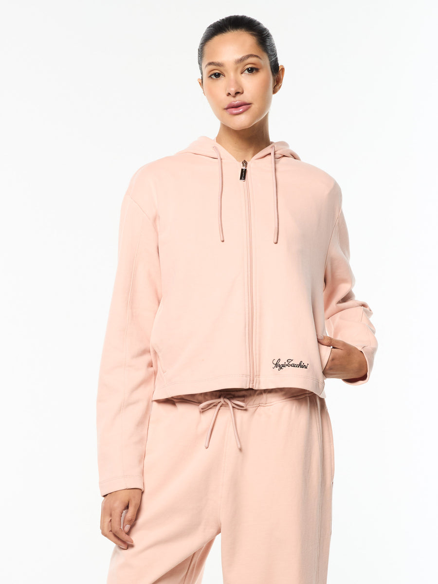 Classic comfort, reimagined. The Nera Hoodie is crafted from heavyweight cotton French terry in a relaxed, cropped silhouette that delivers warmth with contemporary style. A spacious double-layer hood features custom Sergio Tacchini tennis artwork embroidery, while side-seam handwarmer pockets secure all your essentials. Zip it up, layer it on, and elevate your everyday.