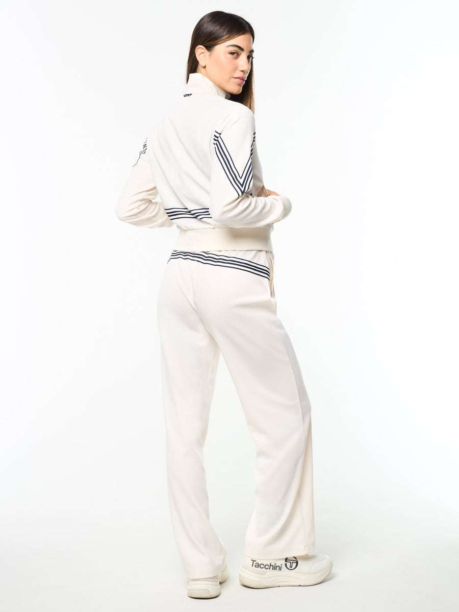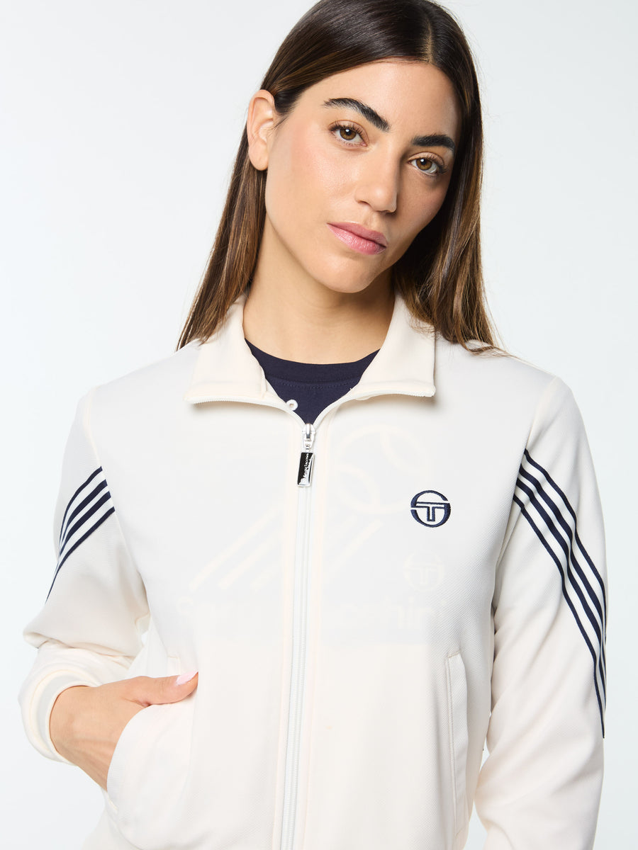Vintage sport aesthetics in a contemporary silhouette. The Sole Track Jacket is cut from versatile twill and features chevron stripe detailing at the sleeves for a subtle edge. Whether layered over activewear or styled with denim for an off-duty look, this jacket brings polish to your everyday rotation.
