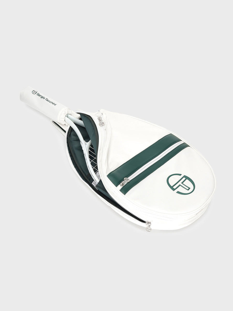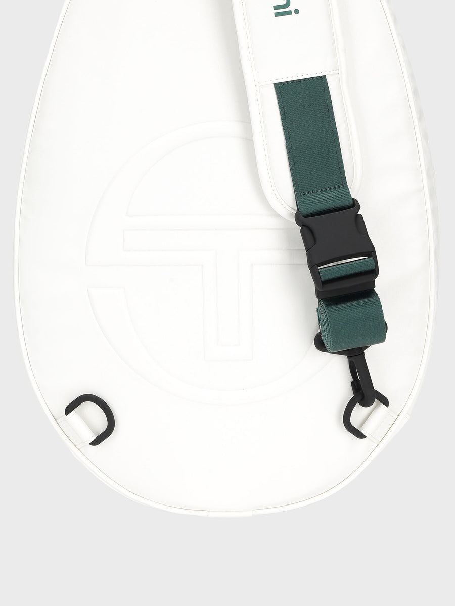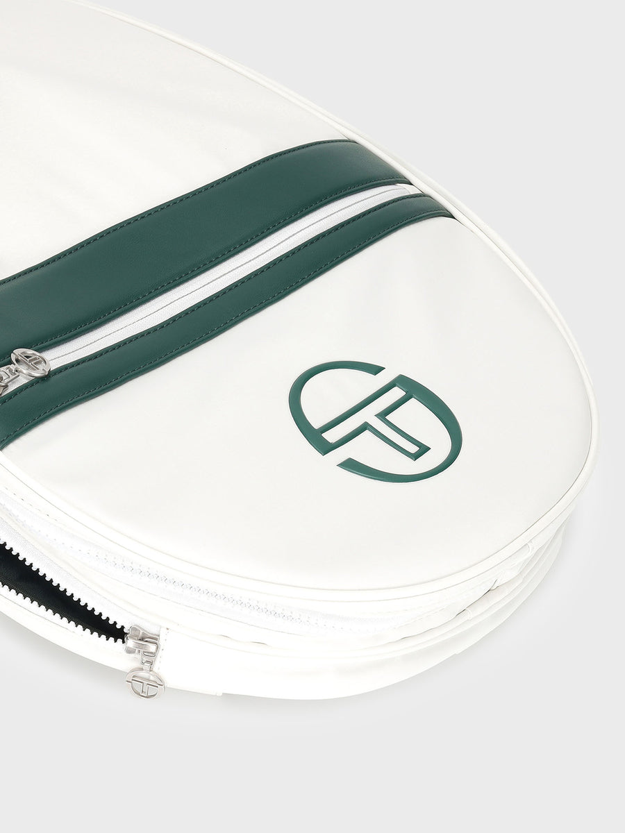 Hit the court in style with our Damarindo Racket Bag, made of sporty vegan leather with spacious zip compartments for two tennis rackets. Featuring our iconic Damarindo double stripe—popularized by tennis champion John McEnroe in the '80s—this streamlined design is complete with a comfortable adjustable shoulder strap that attaches to a right- or left-oriented position depending on personal preference.