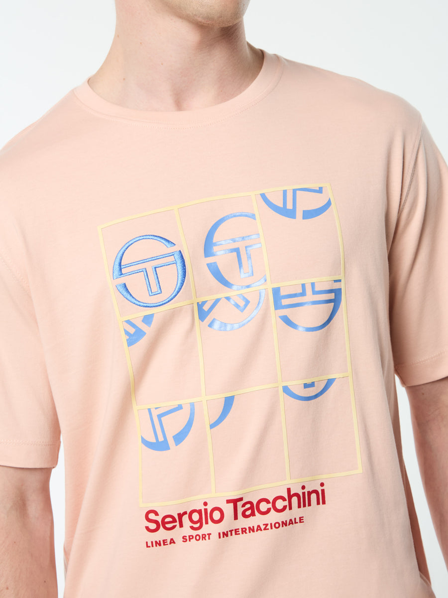 • Custom Sergio Tacchini artwork in mixed media print w/ embroidered detailing