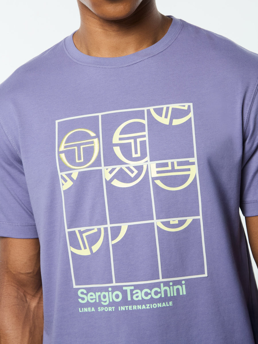 • Custom Sergio Tacchini artwork in mixed media print w/ embroidered detailing
